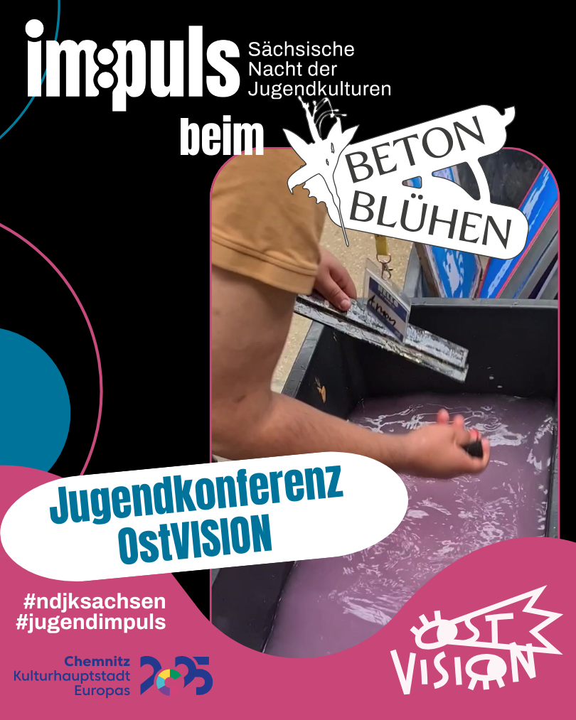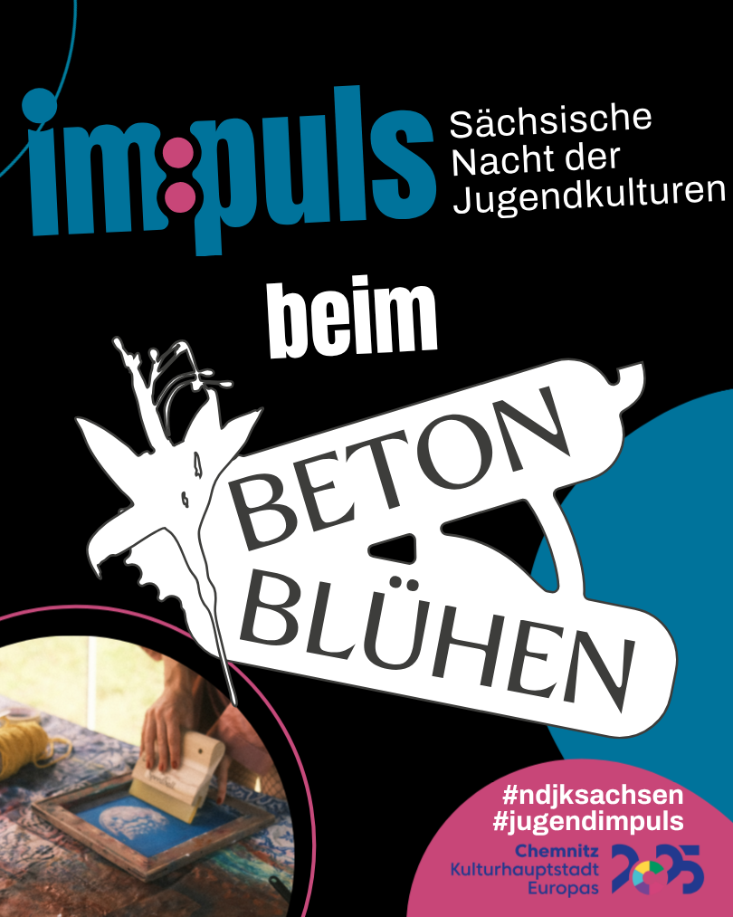 Im Rahmen des Kulturhauptstadtjahres Chemnitz 2025 fand vom 08.-12. Oktober 2025 in Chemnitz ein Festival voll junger Ideen, Kreativität und kultureller Vielfalt statt: Betonblühen bringt Jugendliche aus Sachsen, Deutschland und ganz Europa zusammen.